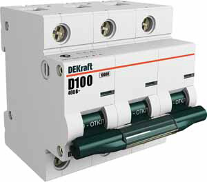 Автоматический выключатель серии ВА-201 DEKraft; 3P; номинальный ток 63 А; характеристика D; отключающая способность 10 кА; ширина модуля 27мм. Монолитная лицевая панель обеспечивает безопасную эксплуатацию аппарата. Окошко-индикатор всегда показывает состояние аппарата вне зависимости от положения рукоятки управления. Двухпозиционная защелка облегчает монтаж выключателя. Аппарат на 100% совместим с корпусами и оболочками DEKraft, Systeme Electric.