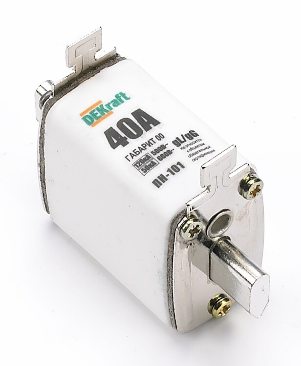 Предохранитель ножевой серии ПН-101 DEKraft; тип 33; габарит 00; ном. ток 4 А. Предохранители ножевые применяются в однофазных и трехфазных сетях переменного тока, напряжением до 660 В, частотой 50 Гц. Они представляют собой наиболее компактные и экономичные устройства защиты электрических цепей и кабельных линий от перегрузки и короткого замыкания. Индикатор состояния позволяет быть уверенным в защите электрооборудования.