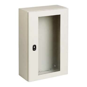Шкаф S3D с прозрачной дверью 10х8х4. - тип устройства или его аксессуаров: компактный шкаф - номинальная высота шкафа: 1000 мм - номинальная ширина шкафа: 800 мм - номинальная глубина шкафа: 400 мм - описание монтажной платы: без монтажной платы - тип платы Кабельного ввода: стандарт - состав устройства: замок 1, плата Кабельного ввода 2, дверь 1, корпус 1. Преимущества: Шкаф Spacial и система Prisma Plus объединены в единое целое для использования в промышленных целях: Высокая стойкость к воздействиям неблагоприятной окружающей среды и большим нагрузкам, Шкафы Spacial имеют степень защиты IP55 и обладают высокой стойкостью внешнему механическому воздействию IK10, сделаны из стали толщиной 1,8 мм.Применения: Различные сферы промышленности, энергетика и инфраструктуры.