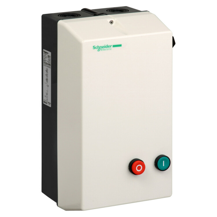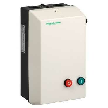Пускатель в корпусе 25A 220В. диапазон: TeSys - наименование изделия: TeSys LE - краткое название устройства: LE4DПреимущества: Широкая линейка закрытых пускателей прямого включения и устройств плавного пуска, отличающихся простотой использования и установки. Эти компактные, эргономические пускатели можно установить как на стене, так и непосредственно на оборудовании. Применения: Промышленность, инфраструктура, здания и т.д. Производство автомобилейЛюбое оборудование, требующее использования. пускателей прямого включения напряжения для пуска и останова электродвигателей. плавного пуска.