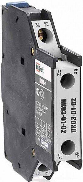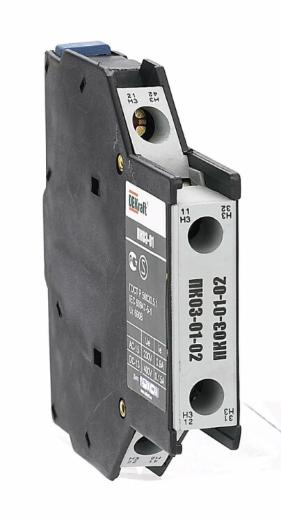 Приставка контактная серии ПК-03-01 для контакторов КМ-103 DEKraft; кол-во контактов - 2НЗ; ном.ток 10 А; ном.напряжение до 690 В; установка с лицевой стороны; степень защиты IP20. Приставки контактные предназначены для увеличения количества вспомогательных контактов контактора. Приставки боковой установки ПК-03-01 являются эксклюзивом и позволяют значительно сэкономить на глубине шкафа, который будет стоить дешевле.