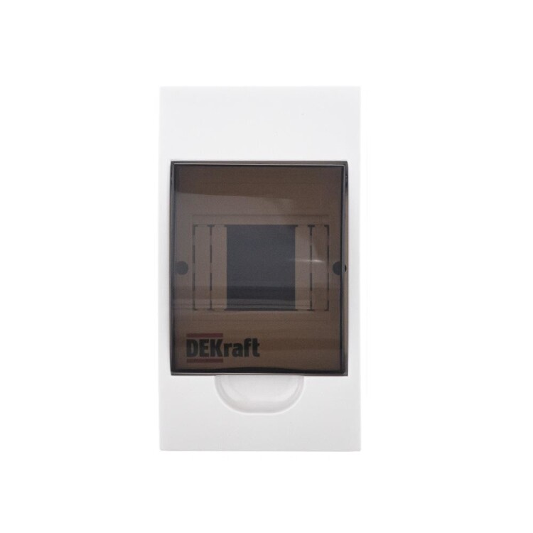 Корпус пластиковый навесной серии ЩРН-П IP41 RAL 9002 (светло-серый) используют для установки модульных устройств. Дизайн дверцы корпуса имеет скругленные формы. Фронтальные части корпуса, дверца, основание корпуса изготавливаются из самозатухающего ABS-пластика. Корпус имеет штампованные вводы для кабелей с разных сторон, и расстояния до точек крепления указаны сзади. Корпус является встраиваемым, имеет 1 черную DIN-рейку и 4 модуля (18 мм) для установки устройств, изолированный держатель для шинок, шинки N и PE. Дверца фиксируется в верхнем положении. Щиток на 100% совместим с модульным оборудованием Dekraft и Systeme Electric.