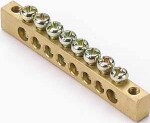 Шина нулевая серии ШН-102 Dekraft; исполнение – колодка на 8 зажимов; сечение - 6х9 мм; длина – 65 мм; максимальный ток – 100 А; материал – высококачественная электротехническая бронза; крепёж - по центру; кол-во в упаковке – 10 шт. Нулевая шина позволяет создать сразу несколько точек подключения нагрузок от общего ввода к нулевому проводнику, обеспечить неразрывность цепи на участке от заземления до конкретной нагрузки, а также выполнить разделение защитного и рабочего нулевых проводников.