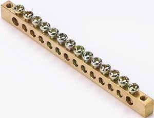 Шина нулевая серии ШН-102 Dekraft; исполнение – колодка на 14 зажимов; сечение - 6х9 мм; длина – 115 мм; максимальный ток – 100 А; материал – высококачественная электротехническая бронза; крепёж - по центру; кол-во в упаковке – 10 шт. Нулевая шина позволяет создать сразу несколько точек подключения нагрузок от общего ввода к нулевому проводнику, обеспечить неразрывность цепи на участке от заземления до конкретной нагрузки, а также выполнить разделение защитного и рабочего нулевых проводников.