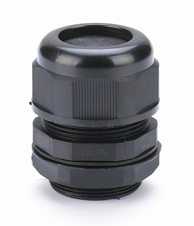Кабельный ввод серии КВ-102 Dekraft; типа MG 40 диаметр кабеля – от 24 до 32 мм; цвет – серый; материал – пластик; степень защиты – IP68; количество в упаковке – 12 шт. Кабельный ввод состоит из фиксирующей гайки, корпуса, уплотнения из нейлона, а также из уплотнителя и прокладки из неопрена. Кабельные вводы имеют химическую стойкость к соленой воде, слабым кислотам, маслам, нефтепродуктам и основным растворителям. Конструкция кабельных вводов позволяет пропускать кабель без его демонтажа.