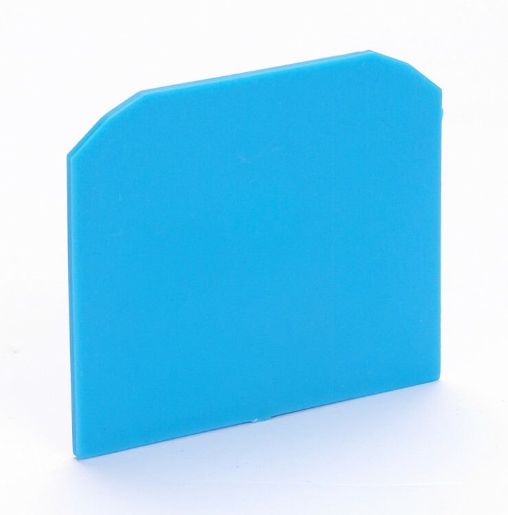 Заглушка для зажимов наборных серии ЗП-102 Dekraft; на номинальный ток 250 А; цвет – синий; материал – полиамид; количество в упаковке – 50 шт. Заглушки предназначены для установки между наборными зажимами для увеличения изоляционного расстояния и повышения безопасности распределительного щита.