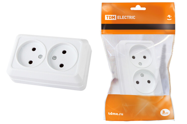 Розетка двойная 2П открытой установки IP20 10А 250В (керамика) белая "Ладога" TDM (кр.10шт)