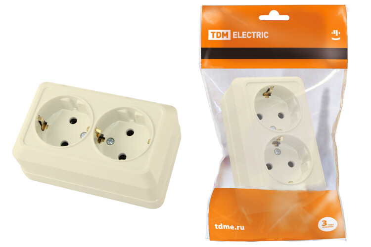 Розетка двойная 2П+3 открытой установки IP20 16А 250В (керамика) сл. кость "Ладога" TDM (кр.10шт)