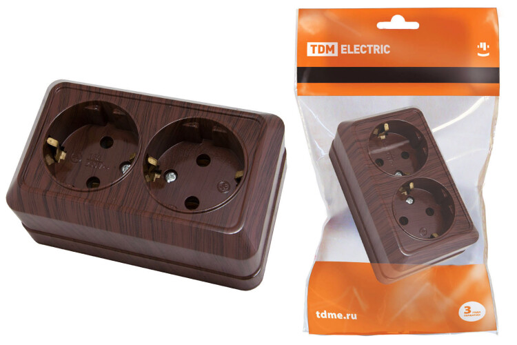 Розетка двойная 2П+3 открытой установки IP20 16А 250В (керамика) бук "Ладога" TDM (кр.10шт)