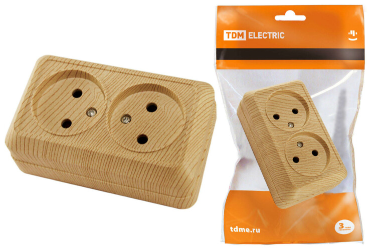 Розетка двойная 2П открытой установки IP20 10А 250В (керамика) сосна "Ладога" TDM (кр.10шт)
