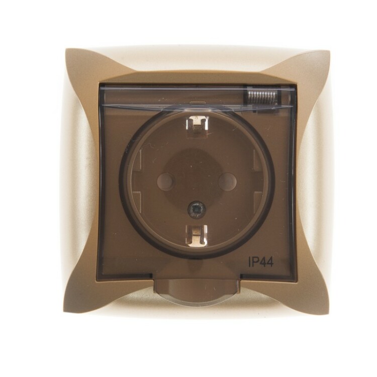 Дуэт розетка с заземлением со шторками с крышкой, 16А, IP44, в сборе, шампань. тип устройства или его аксессуаров: 1 розетка - комплектация изделия: механизм в сборе - описание стандарта розетки: с заземляющим контактом. Преимущества: Ваш вкус оценят, Доступная цена, Инновационный дизайн, Безопасность и надежность монтажа, Большой выбор функциональных возможностей и цветовых сочетаний, Безопасная эксплуатация изделий, Соответствие ГОСТ Р и МЭК, Удобная упаковка.. применения: - Для недорогого ремонта, Для загородного дома, Для офисов класса В, Для гостиниц..