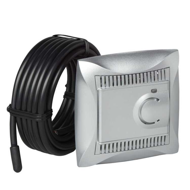 ДУЭТ ТЕРМОСТАТ электр.теплого пола с датчиком,от5до+50 and deg;C,10A,в сборе,СЕРЕБРИСТЫЙ