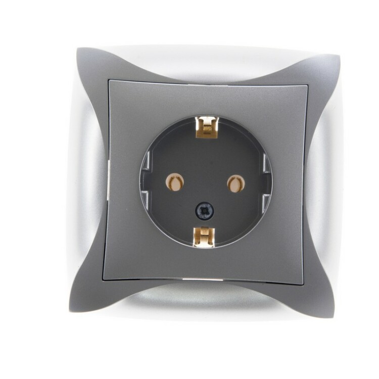 Дуэт розетка с заземлением, 16А, в сборе, серебристый. тип устройства или его аксессуаров: 1 розетка - комплектация изделия: механизм в сборе - описание стандарта розетки: с заземляющим контактом. Преимущества: Ваш вкус оценят, Доступная цена, Инновационный дизайн, Безопасность и надежность монтажа, Большой выбор функциональных возможностей и цветовых сочетаний, Безопасная эксплуатация изделий, Соответствие ГОСТ Р и МЭК, Удобная упаковка.. применения: - Для недорогого ремонта, Для загородного дома, Для офисов класса В, Для гостиниц..