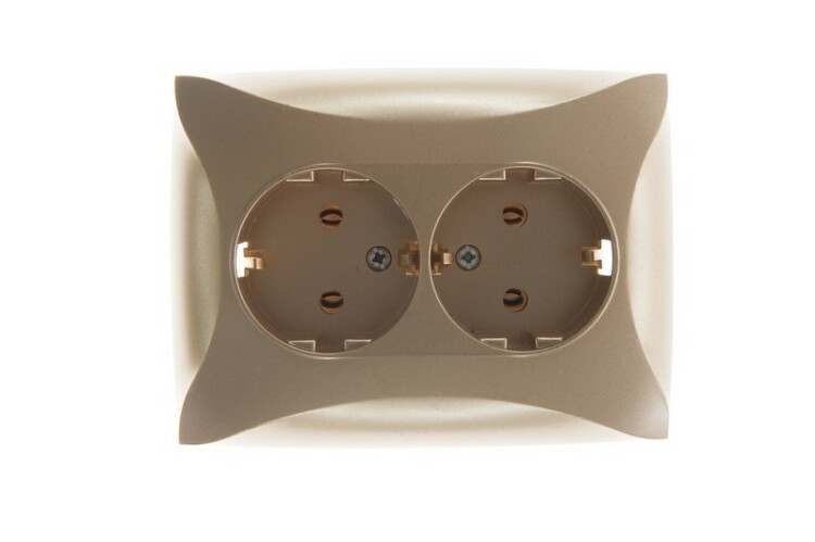 Дуэт Розетка двойная с заземлением, 16А, в сборе, шампань. тип устройства или его аксессуаров: 2-я розетка - комплектация изделия: механизм в сборе - описание стандарта розетки: с заземляющим контактом. Преимущества: Ваш вкус оценят, Доступная цена, Инновационный дизайн, Безопасность и надежность монтажа, Большой выбор функциональных возможностей и цветовых сочетаний, Безопасная эксплуатация изделий, Соответствие ГОСТ Р и МЭК, Удобная упаковка.. применения: - Для недорогого ремонта, Для загородного дома, Для офисов класса В, Для гостиниц..