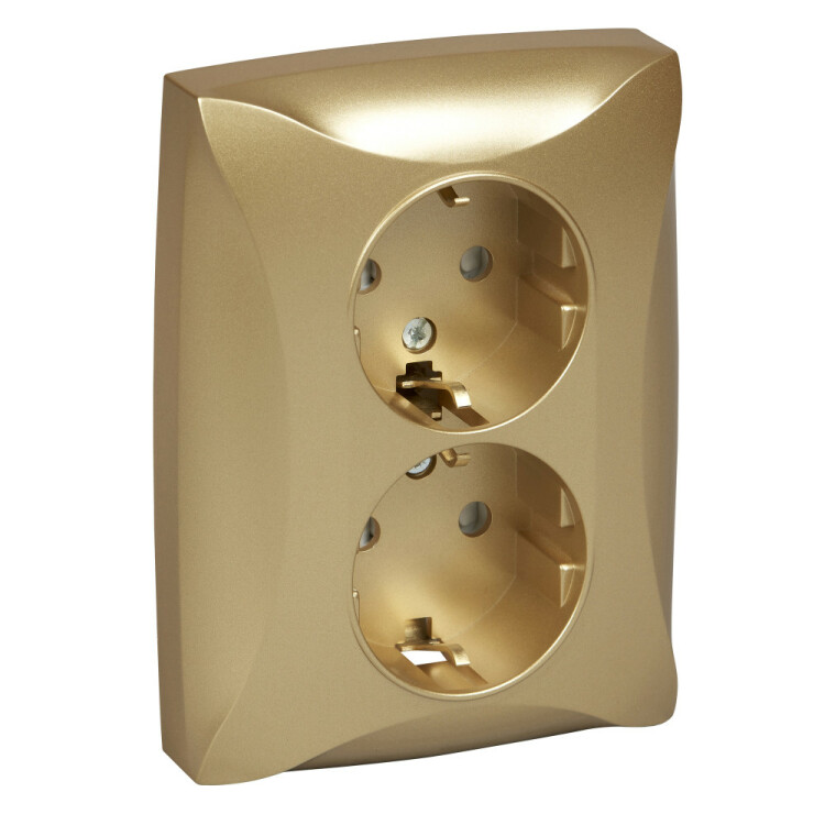 Дуэт Розетка двойная с заземлением со шторками, 16А, в сборе, шампань. тип устройства или его аксессуаров: 2-я розетка - комплектация изделия: механизм в сборе - описание стандарта розетки: с заземляющим контактом. Преимущества: Ваш вкус оценят, Доступная цена, Инновационный дизайн, Безопасность и надежность монтажа, Большой выбор функциональных возможностей и цветовых сочетаний, Безопасная эксплуатация изделий, Соответствие ГОСТ Р и МЭК, Удобная упаковка.. применения: - Для недорогого ремонта, Для загородного дома, Для офисов класса В, Для гостиниц..