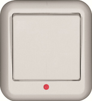 Выключатель одноклавишный Schneider Electric ПРИМА (открытой установки, цвет белый) с подсветкой предназначен для сетей до 250 В, на ток до 6 А.