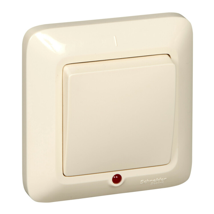 Выключатель одноклавишный Schneider Electric ПРИМА (скрытой установки, цвет слоновая кость) с подсветкой предназначен для сетей до 250 В, на ток до 6 А.
