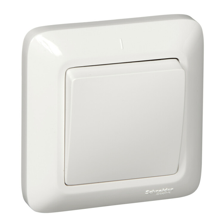 Выключатель одноклавишный Schneider Electric ПРИМА (скрытой установки, цвет белый) предназначен для сетей до 250 В, на ток до 6 А.