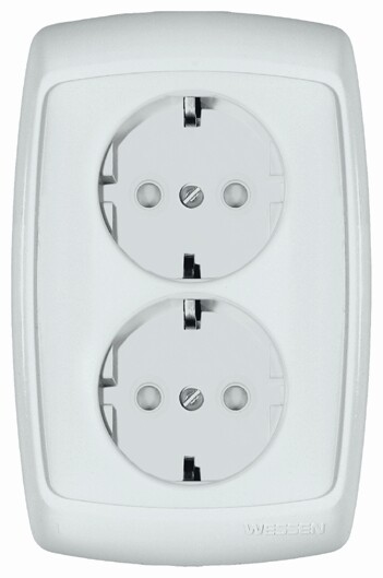 РОНДО двойная РОЗЕТКА С/У без з/к со штороками 16А 250В, БЕЛЫЙ. Россия