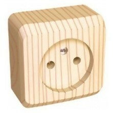 Розетка Schneider Electric ПРИМА (открытая установка, сосна) без заземления и без шторок, с изолирующей пластиковой пластиной предназначена для сетей до 250 В на ток до 10 А.