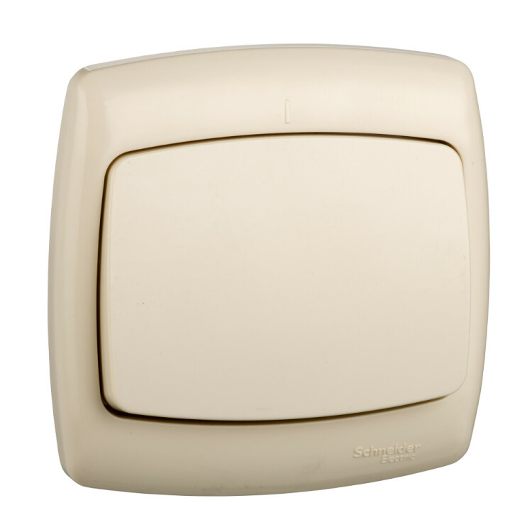 Выключатель одноклавишный Schneider Electric РОНДО (скрытой установки, цвет слоновая кость) предназначен для сетей до 250 В, на ток до 10 А.