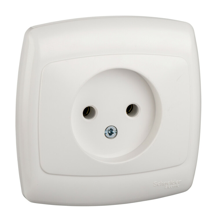 Розетка Schneider Electric РОНДО (скрытой установки, цвет белый) без заземления со шторками предназначена для сетей до 250 В на ток до 10 А.