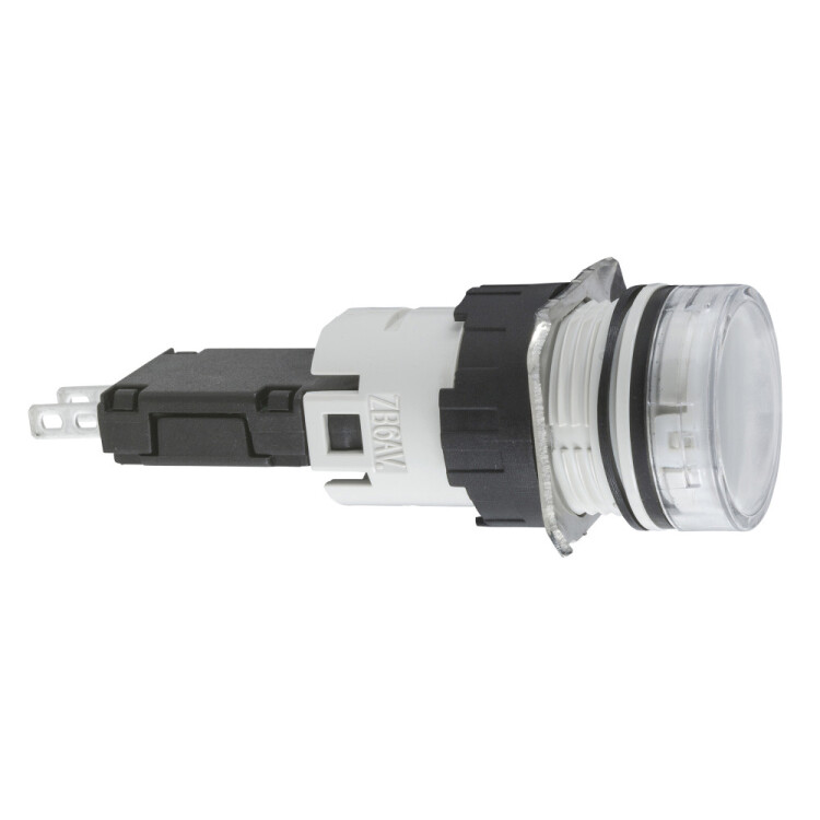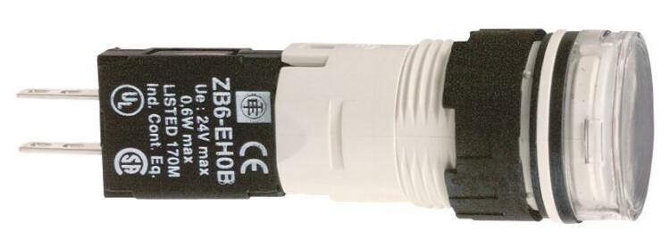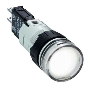 сигнальная лампа 16мм 12-24В белая. серия продукта: Harmony XB6 - тип устройства или его аксессуаров: сигнальная лампа в сборе - краткое название устройства: XB6 - монтажный диаметр: 16 мм. Преимущества: Элементы конструкции визуально различимы с большого расстояния благодаря яркому цвету и маркировке, поэтому ошибки при первоначальном подключении и последующих операциях обслуживания сводятся к минимуму. Корпус со степенью защиты IP66 защищает данное устройство от ударных нагрузок, а также от пыли, воды и вибрации, поэтому оно идеально подходит для работы в неблагоприятных условиях окружающей среды.Применения: в средах, где необходима хорошая устойчивость к химическим веществам и/или двойная электрическая изоляция.