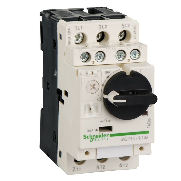 Автоматический выключатель. диапазон: TeSys - наименование изделия: TeSys GV2 - краткое название устройства: GV2P - тип устройства или его аксессуаров: автоматический выключательПреимущества: Компактные и простые в эксплуатации, автоматические выключатели электродвигателей TeSys GV2 имеют ширину 45 мм и классифицируются в зависимости от отключающей способности и типа управления. Применение: Промышленность, инфраструктура, строительство и т. д. Управление и защита электродвигателей в соответствии со стандартами МЭК 947-2 и МЭК 947-4-1. Легко конфигурируются при помощи винтов или фиксацией на монтажные направляющие.
