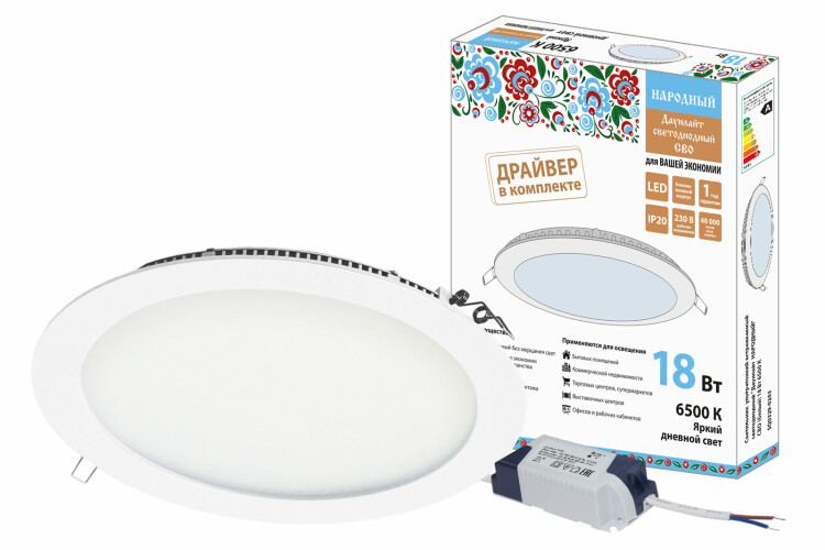 Светильник ультратонкий встраиваемый светодиодный "Даунлайт НАРОДНЫЙ" СВО (белый) 18 Вт 6500К (кр.1шт)