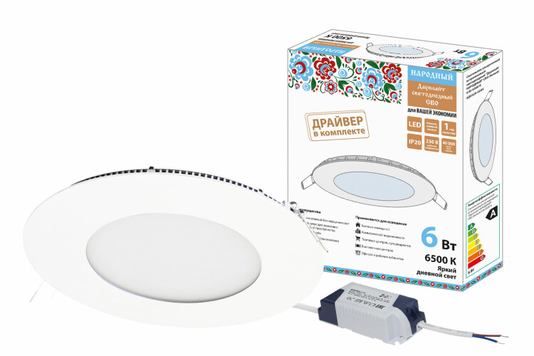 Светильник ультратонкий встраиваемый светодиодный "Даунлайт НАРОДНЫЙ" СВО (белый) 6 Вт 6500К (кр.1шт)