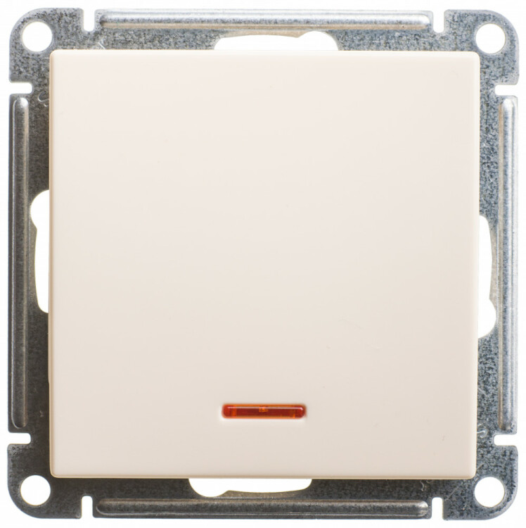 Механизм Schneider Electric W59 (цвет слоновая кость) выключателя 1-клавишного двухполюсного с подсветкой подходит для сетей 250 В, на ток до 10 А.
