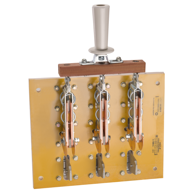 Выключатель-разъединитель 3 полюсный на номинальный ток 1600 А, где установлена несъемная рукоятка, а механическая износостойкость составляет 6300 циклов.