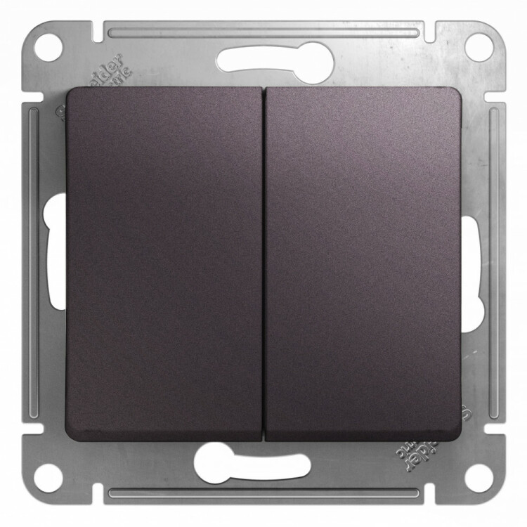 Механизм Systeme Electric (ранее Schneider Electric) серии Glossa (цвет сиреневый туман) выключателя 2-клавишного подходит для сетей 250 В, на ток 10 А.