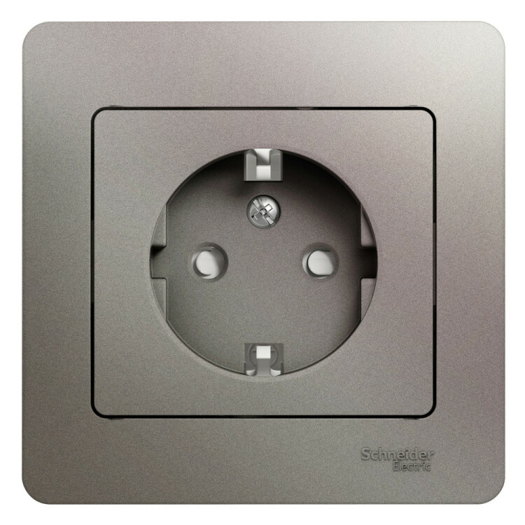 Розетка Systeme Electric (ранее Schneider Electric) серии Glossa (в сборе, цвет платина) одинарная с заземлением и шторкам и подходит для сетей 250 В, на ток 16 А. Заземляющий контакт обеспечивает дополнительную защиту от удара электрическим током. При наличии заземления электрический потенциал уходит в землю, защищая человека. Выполнен из материала PС+ASA, стойкого к УФ-излучению и появлению царапин. Эргономичные клеммы розеток расположены в один ряд.