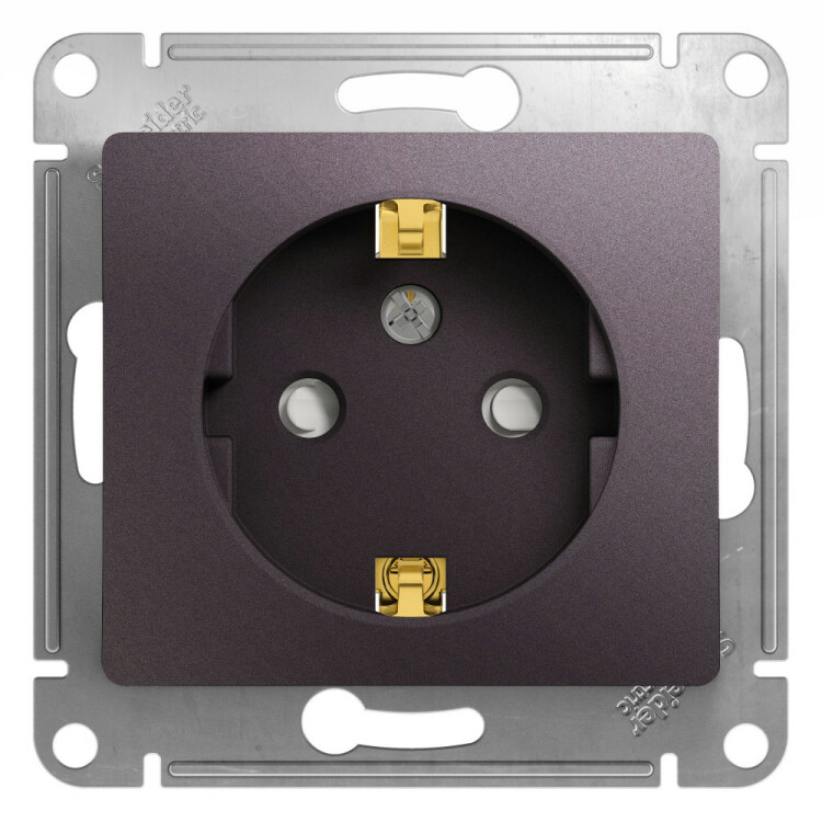 Механизм Systeme Electric (ранее Schneider Electric) серии Glossa (цвет сиреневый туман) розетки одинарной с заземлением и шторками подходит для сетей 250 В, на ток 16 А.