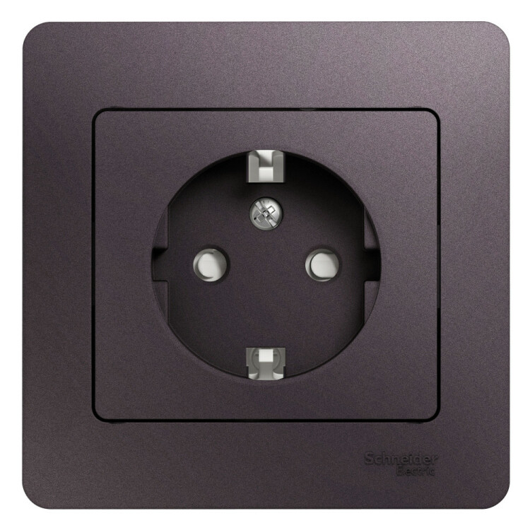 Розетка Systeme Electric (ранее Schneider Electric) серии Glossa (в сборе, цвет сиреневый туман) одинарная с заземлением и без шторок подходит для сетей 250 В, на ток 16 А.