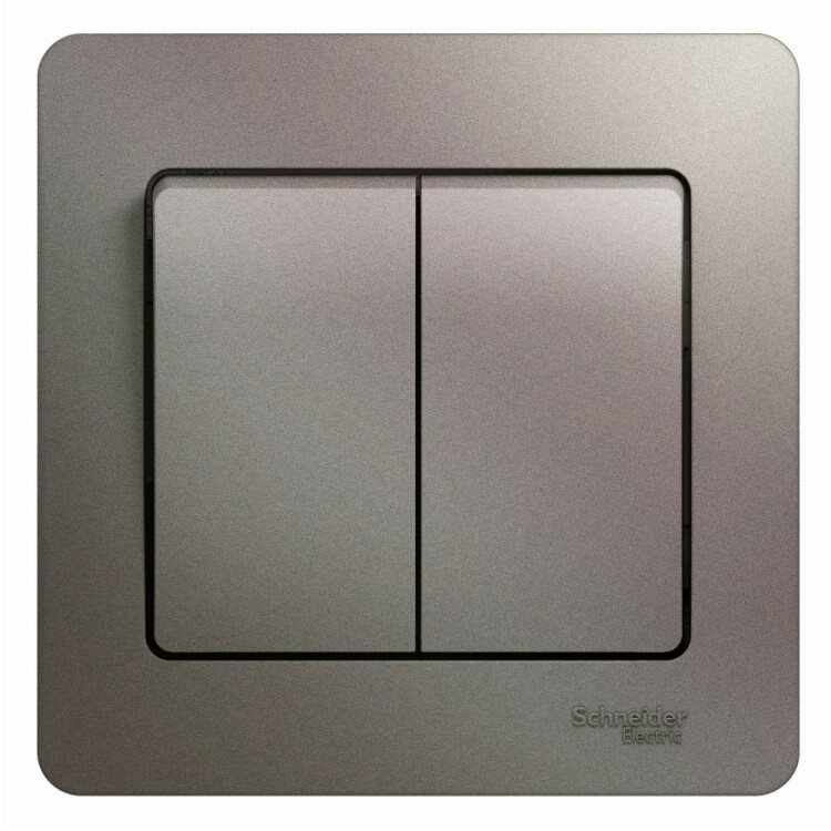 Выключатель Systeme Electric (ранее Schneider Electric) серии Glossa (в сборе, цвет платина) двухклавишный подходит для сетей 250 В, на ток 10 А. Двухклавишный выключатель позволяет управлять двумя источниками света с одной точки. Выполнен из материала PС+ASA, стойкого к УФ-излучению и появлению царапин. Эргономичные клеммы расположены в два ряда: сверху и снизу.
