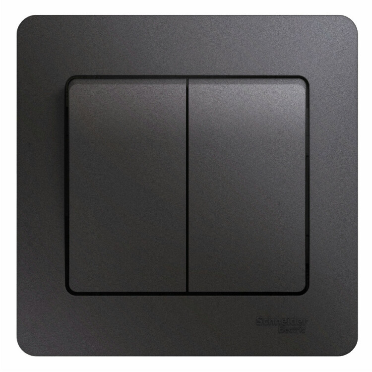 Выключатель Systeme Electric (ранее Schneider Electric) серии Glossa (в сборе, цвет графит) двухклавишный подходит для сетей 250 В, на ток 10 А. Двухклавишный выключатель позволяет управлять двумя источниками света с одной точки. Выполнен из материала PС+ASA, стойкого к УФ-излучению и появлению царапин. Эргономичные клеммы расположены в два ряда: сверху и снизу.