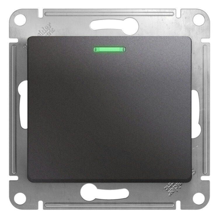 Механизм Systeme Electric (ранее Schneider Electric) серии Glossa (цвет графит) выключателя 1-клавишного с подсветкой подходит для сетей 250 В, на ток 10 А. Благодаря современной светодиодной подсветке зеленого цвета изделие легко найти в темноте. Выполнен из материала PС+ASA, стойкого к УФ-излучению и появлению царапин. Эргономичные клеммы расположены в два ряда: сверху и снизу.