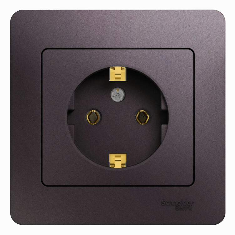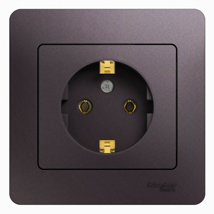 Розетка Systeme Electric (ранее Schneider Electric) серии Glossa (в сборе, цвет сиреневый туман) одинарная без заземления и без шторок подходит для сетей 250 В, на ток 16 А.