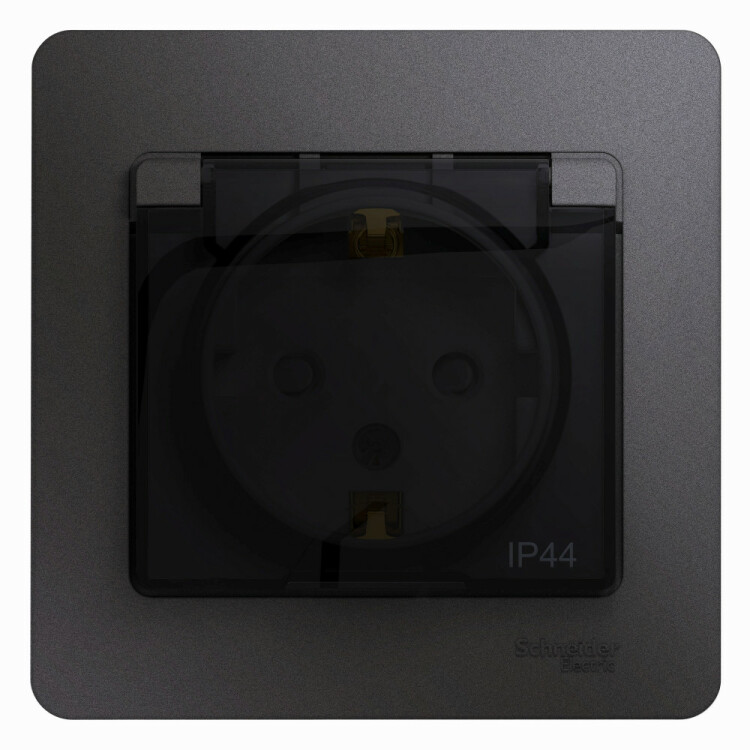 Розетка Systeme Electric (ранее Schneider Electric) серии Glossa (в сборе, цвет графит) одинарная с заземлением, шторками и крышкой подходит для сетей 250 В, на ток 16 А. Изделие со степенью защиты IP44 обеспечит безопасность использования в ванной и на кухне. Заземляющий контакт обеспечивает дополнительную защиту от удара электрическим током. При наличии заземления электрический потенциал уходит в землю, защищая человека. Выполнен из материала PС+ASA, стойкого к УФ-излучению и появлению царапин.