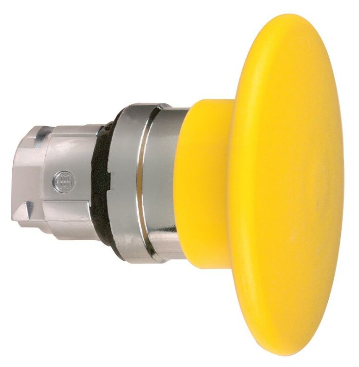 Головка грибовидной кнопки 22 мм желтая 60мм. серия продукта: Harmony XB4 - краткое название устройства: ZB4 - монтажный диаметр: 22 мм. Преимущества: Изделия промышленного назначения этой линейки сочетают простоту установки, гибкость и надежность конструкции. Совершенная система фиксации состоит из головки и корпуса с зажимом, закрепляемые одним винтом, что обеспечивает простую, и в то же время надежную установку. Применения: Промышленность: производители оборудования (для автомобилестроительной, текстильной и лесозаготовительной отраслей), производители электрораспределительных щитов, сфера обслуживания и инфраструктура: производители электрораспределительного оборудования, общественные сооружения, здания, аэропорты.