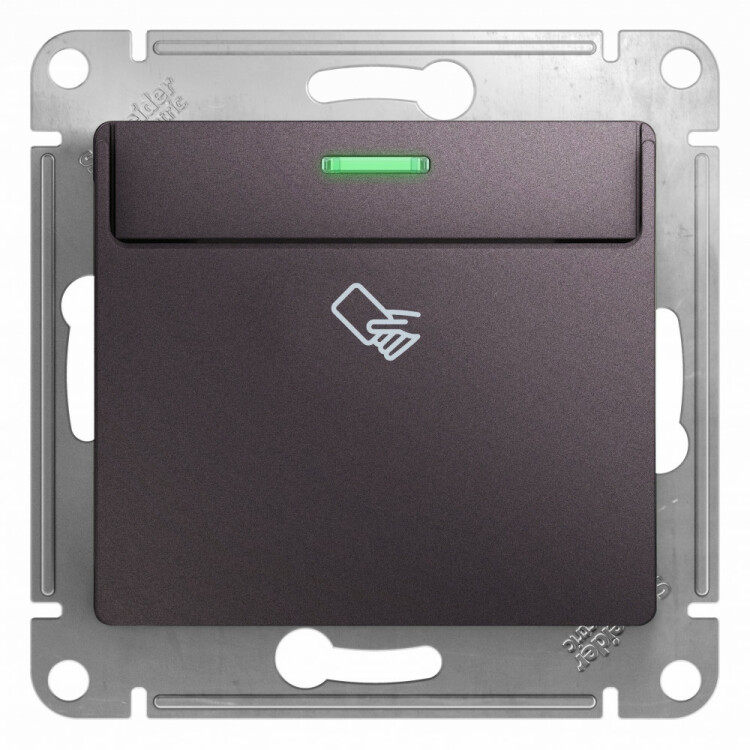 Механизм Systeme Electric (ранее Schneider Electric) серии Glossa (цвет сиреневый туман) выключателя карточного подходит для сетей 250 В, на ток 10 А.
