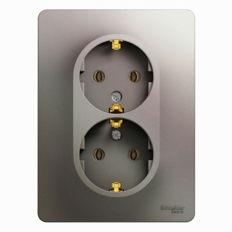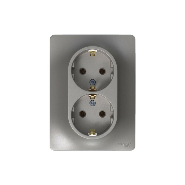 Розетка двойная Systeme Electric (ранее Schneider Electric) серии Glossa (в сборе, цвет платина) с заземлением, без шторок подходит для сетей 250 В, на ток 16 А. Заземляющий контакт обеспечивает дополнительную защиту от удара электрическим током. При наличии заземления электрический потенциал уходит в землю, защищая человека. Выполнен из материала PС+ASA, стойкого к УФ-излучению и появлению царапин. Двойная розетка позволяет подключить два устройства в одном месте.