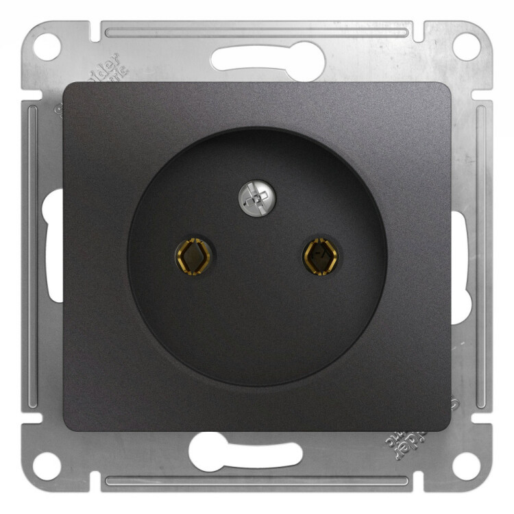 Механизм Systeme Electric (ранее Schneider Electric) серии Glossa (цвет графит) розетки одинарной без заземления и без шторок подходит для сетей 250 В, на ток 16 А. Выполнен из материала PС+ASA, стойкого к УФ-излучению и появлению царапин. Эргономичные клеммы розеток расположены в один ряд.