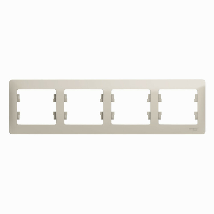 Рамка Systeme Electric (ранее Schneider Electric) серии Glossa (цвет молочный) четырёхместная. Устанавливается в горизонтальном положении. Выполнена из материала PС+ASA, стойкого к УФ-излучению и появлению царапин. Позволяет гармонично вписать электроустановочное изделие в интерьер помещения.