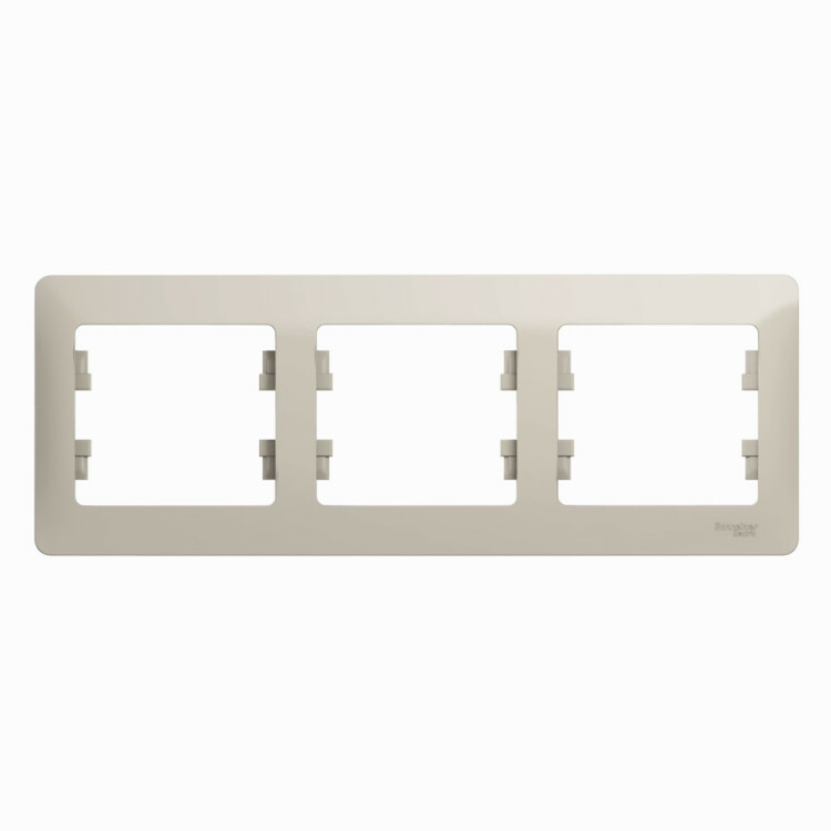 Рамка Systeme Electric (ранее Schneider Electric) серии Glossa (цвет молочный) трёхместная. Устанавливается в горизонтальном положении. Выполнена из материала PС+ASA, стойкого к УФ-излучению и появлению царапин. Позволяет гармонично вписать электроустановочное изделие в интерьер помещения.