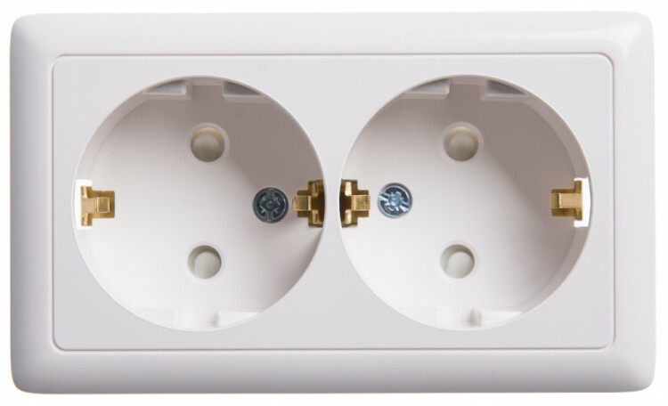Розетка Systeme Electric (ранее Schneider Electric) ХИТ (открытой установки, цвет белый) двойная с заземлением, шторками, предназначена для сетей до 250 В на ток до 16 А. Розетка изготовлена из ABS-пластика, проста в установке, прочна и надежна в применении. Двойная розетка позволяет подключить два устройства в одном месте. Шторки обеспечивают дополнительную безопасность в доме, где находятся дети. Заз емляющий контакт обеспечивает дополнительную защиту от удара электрическим током. При наличии заземления электрический потенциал уходит в землю, защищая человека. Сделано в России.