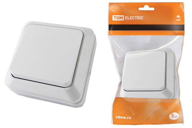 Выключатель 1-кл. открытой установки IP20 10А, белый "Ладога" TDM (кр.10шт)