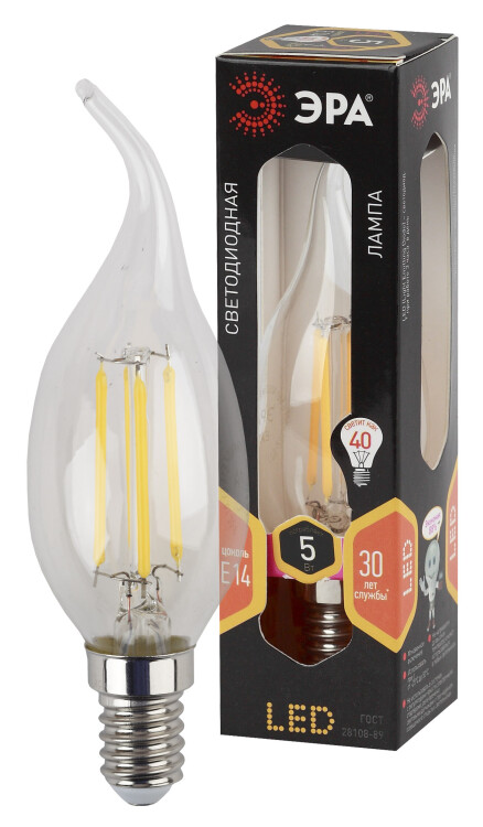 Лампочка светодиодная ЭРА F-LED BXS-5W-827-E14 Е14 / Е14 5 Вт филамент свеча на ветру теплый белый свет (кр. 1шт )